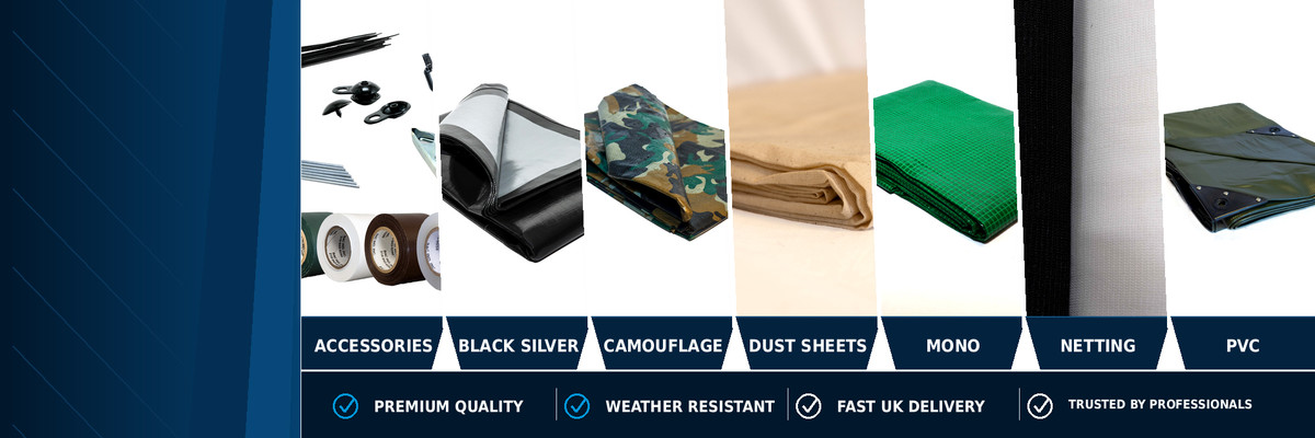 At Tarpaflex we offer a wide range of tarpaulins and associated products to meet the needs of all our customers and traders, while priding ourselves on great customer service and extensive knowledge of the products we hold. Our tarps come in a huge range of sizes and weights, meaning that whether you need to protect outdoor furniture, safeguard your agricultural equipment, or cover construction materials, we have it all. Ranging from budget friendly economy poly tarpaulins to durable heavy weight PVC tarps, debris & privacy netting, bulk bags, hessian, dust sheets, pallet covers as well as catering for all your accessories needs to ensure your goods are well secured. Visit our size guide to find links to all the sizes that we hold for all your covering needs. Please feel free to call us on 01409 221192 to speak to one of our friendly sales team.